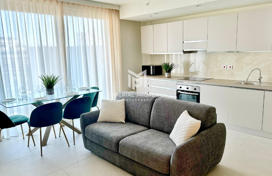 This modern studio apartment offers a bright and inviting layout with a soft light-grey colour scheme that enhances the sense of space. Furnished to a high standard and situated within the prestigious Mercury Suites development, the residence provides comfort, convenience, and access to premium amenities, including the winter-accessible rooftop pool.